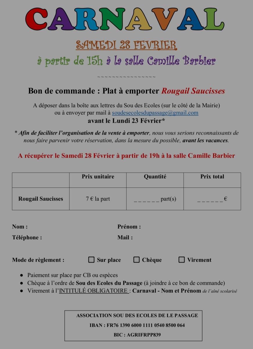 Le Sou des écoles de Le Passage vous convie à son grand carnaval. Cette année encore nous vous attendons en nombre pour partager un moment festif et convivial.