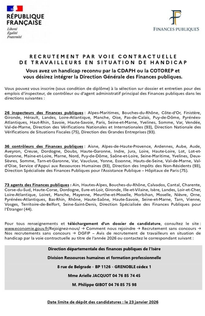 Recrutement Direction Générale des Finances publiques 19/12/2025 Dossiers de candidatures à télécharger sur ville-poisat.fr