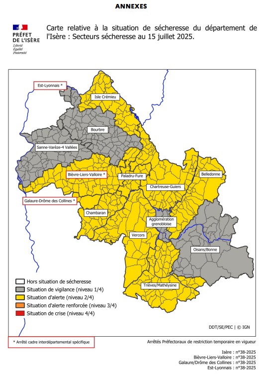 Au regard de la situation hydrologique et météorologique pour l'Isère, et après échange avec les acteurs concernés, le bassin versant de l'Isle Crémieu est placé au niveau d'alerte 2/4.