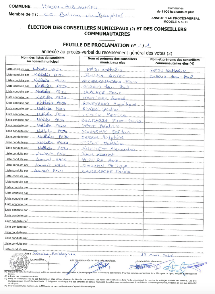 / Résultats - élections municipales PORCIEU-AMBLAGNIEU