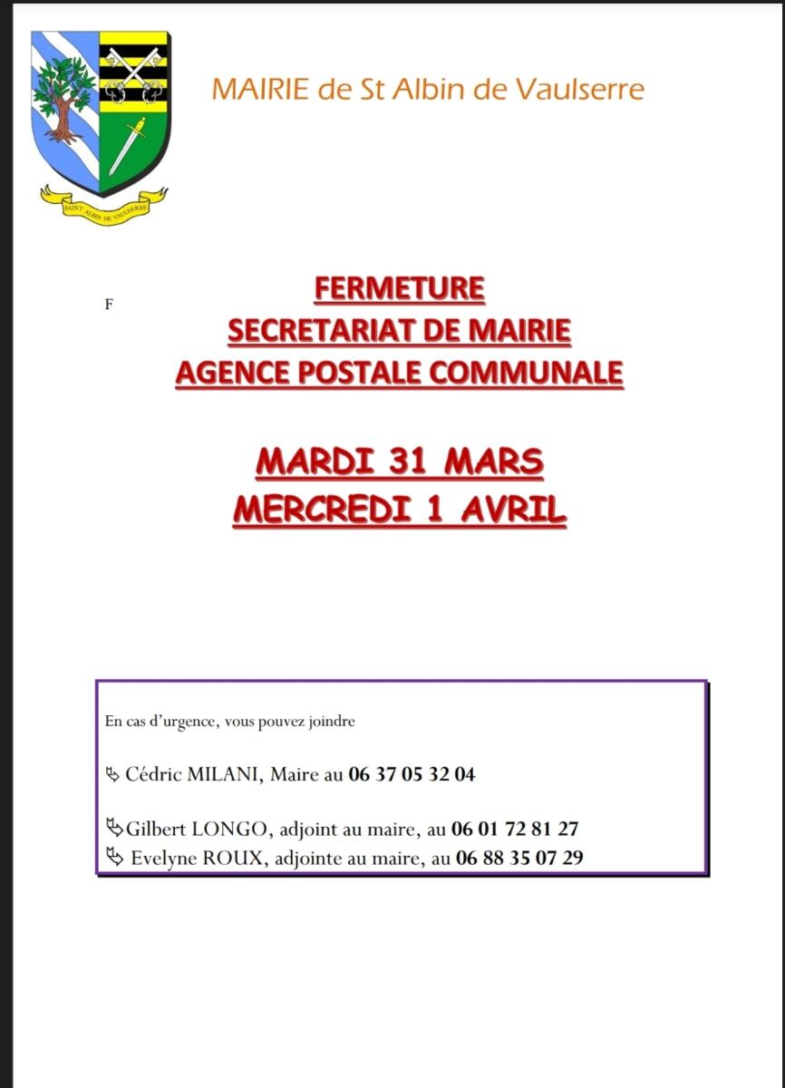 Fermeture des Services Municipaux