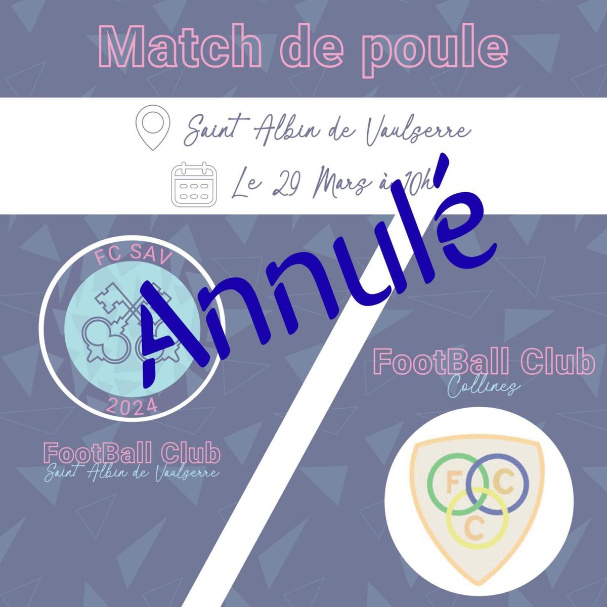 MATCH FC SAV ANNULÉ du Dimanche 29 mars