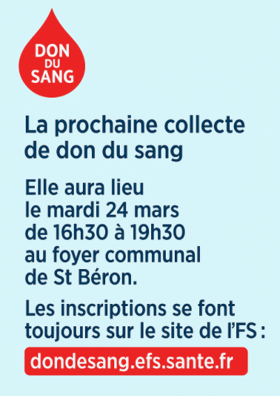 Collecte don du sang le 24 mars 2026 à Saint Béron