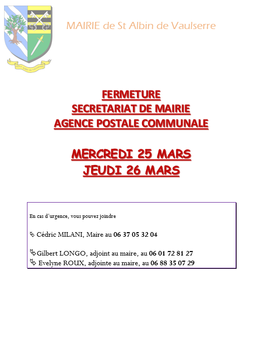Toute l'actualité de Mairie de Saint-Albin-de-Vaulserre