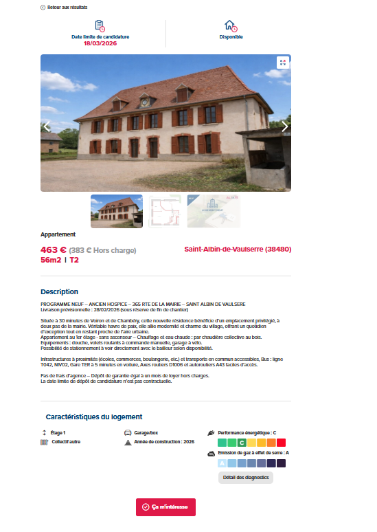 🏡Disponible Appartement de type T2 PLAI situé 365 ROUTE DE LA MAIRIE, 38480, ST ALBIN DE VAULSERRE ANCIEN HOSPICE
