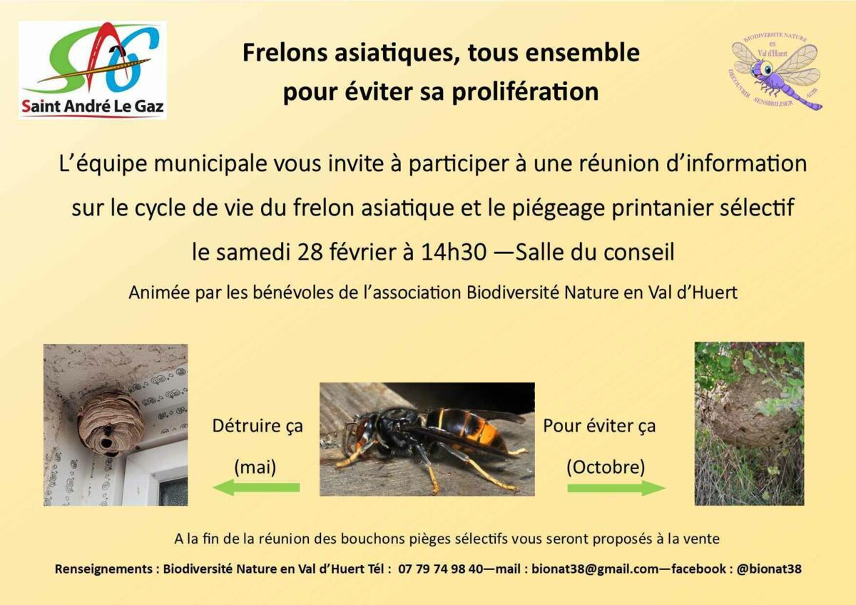 La municipalité de Saint-André-le-Gaz vous invite à une réunion publique contre la prolifération du frelon asiatique.