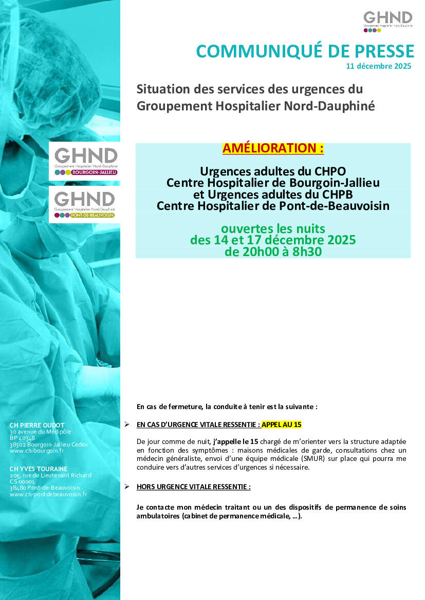 COMMUNIQUE DE PRESSE - SITUATION SERVICES D'URGENCE GHND