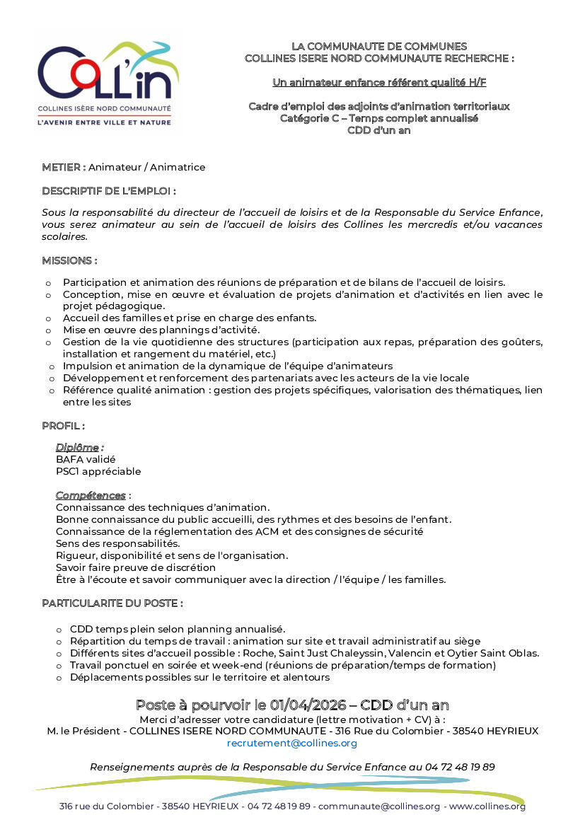 Offres d'emploi - Animateur enfance