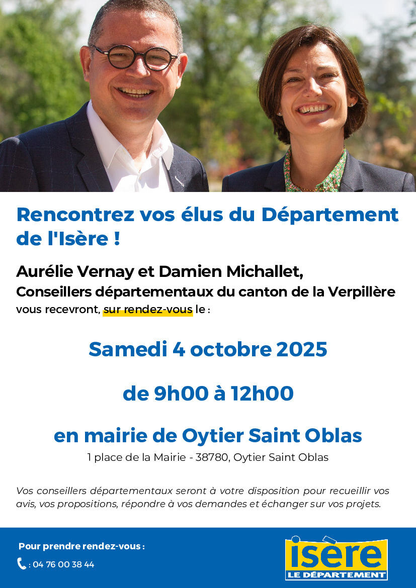 Rencontrez vos élus du Département de l'Isère! 12/09/2025 Plus d'infos ci-dessous : Source : Mairie de Saint-Just-Chaleyssin