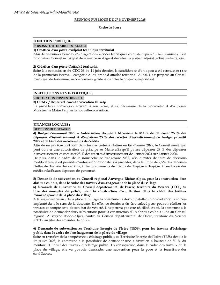 Conseil municipal, le 27 novembre.