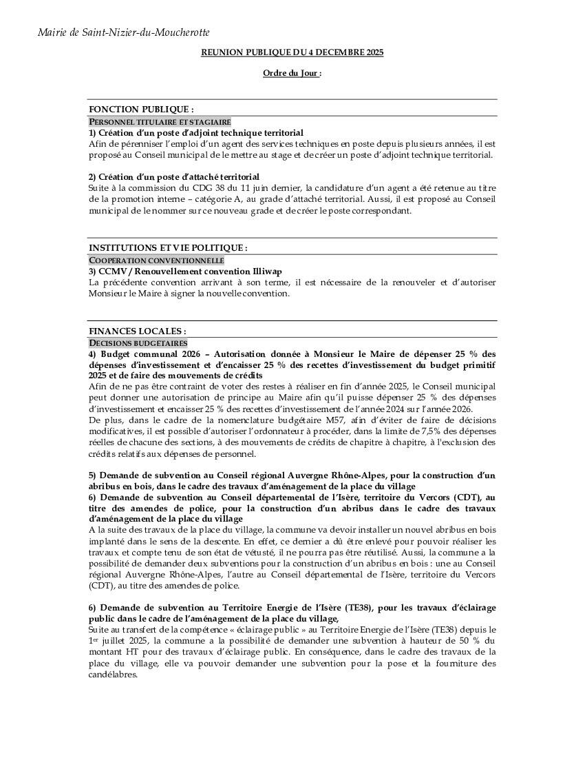 Conseil municipal, le 04 décembre.