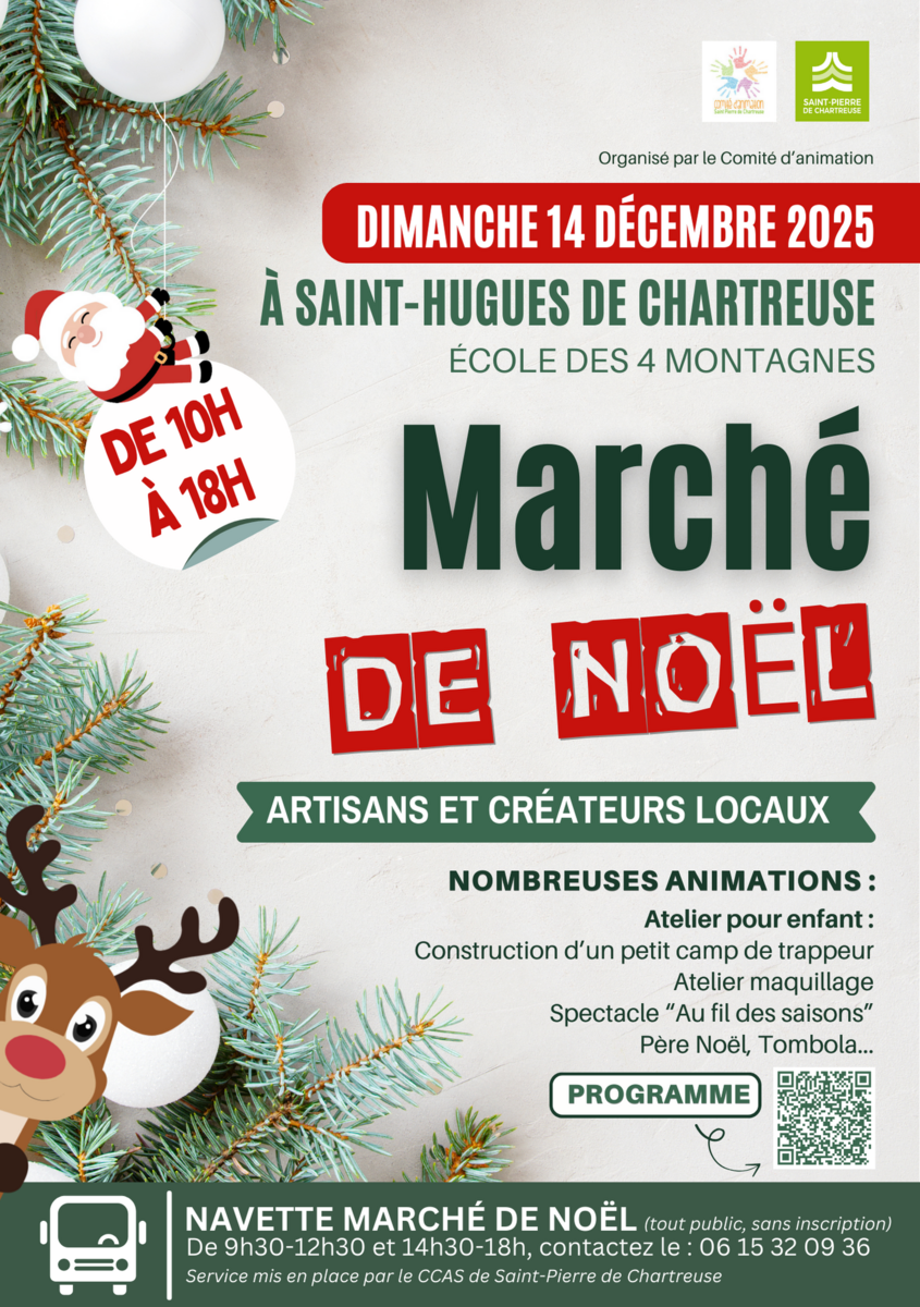 Une navette à titre gracieux vous est proposé par le CCAS de Saint-Pierre de Chartreuse pour vous rendre au marché de Noël, pensez à réserver votre trajet aller/retour en amont ou le jour J au : 06 15 32 09 36