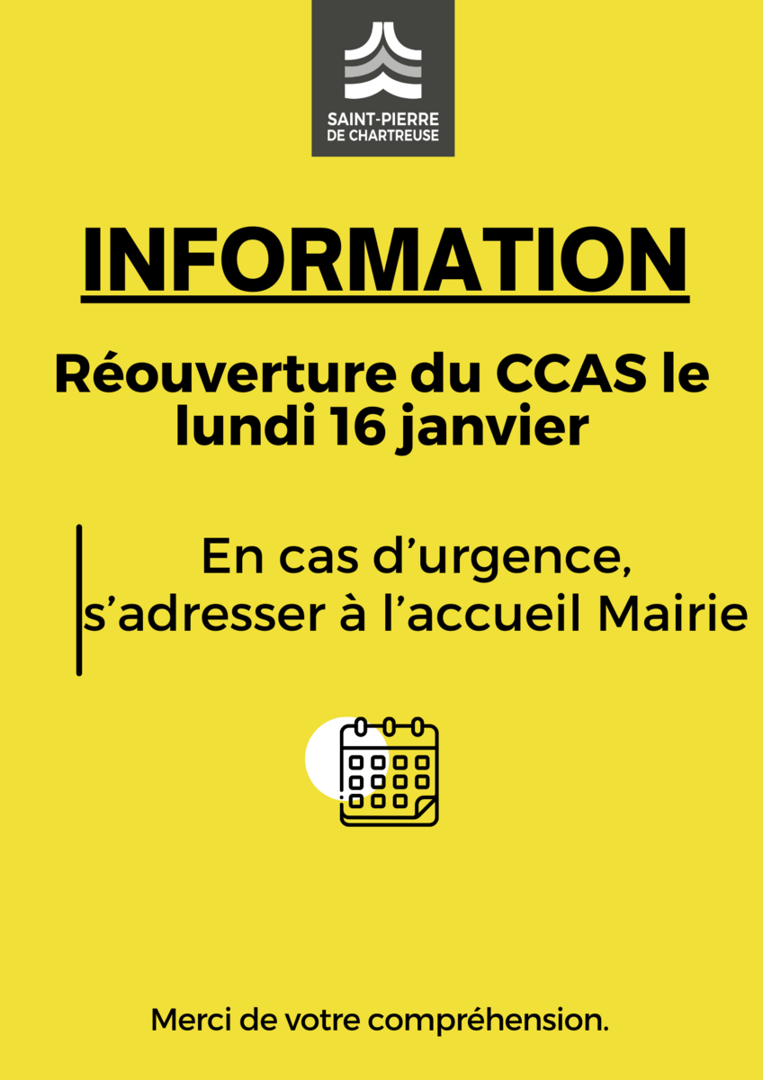 - RĂ©ouverture CCAS lundi 16 fĂ©vrier 2026 – en cas d’urgence s’adresser Ă l’accueil de la mairieÂ