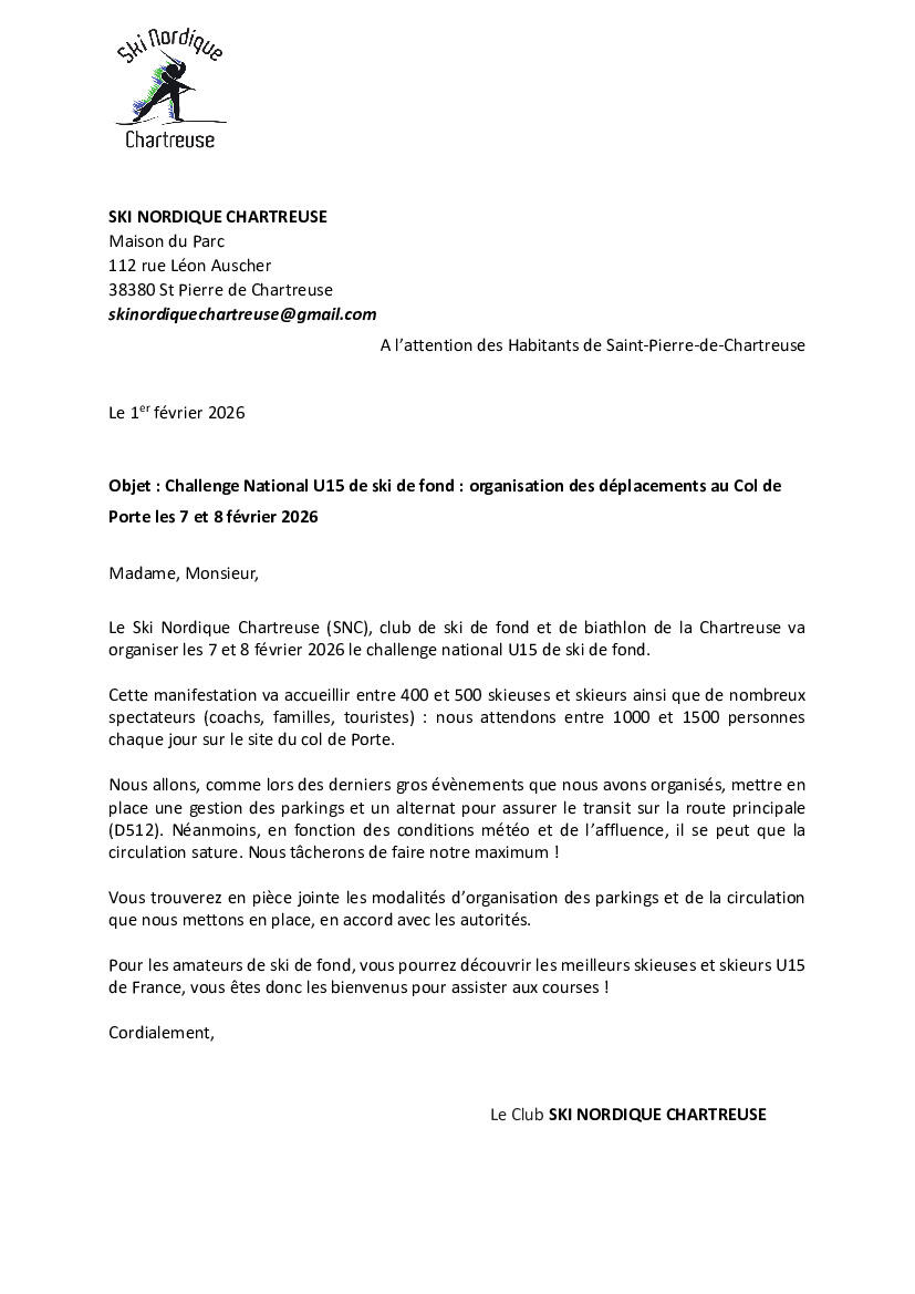 Le club Ski Nordique Chartreuse (SNC), organise les 7 et 8 février 2026 le Challenge National U15 de Ski de Fond.