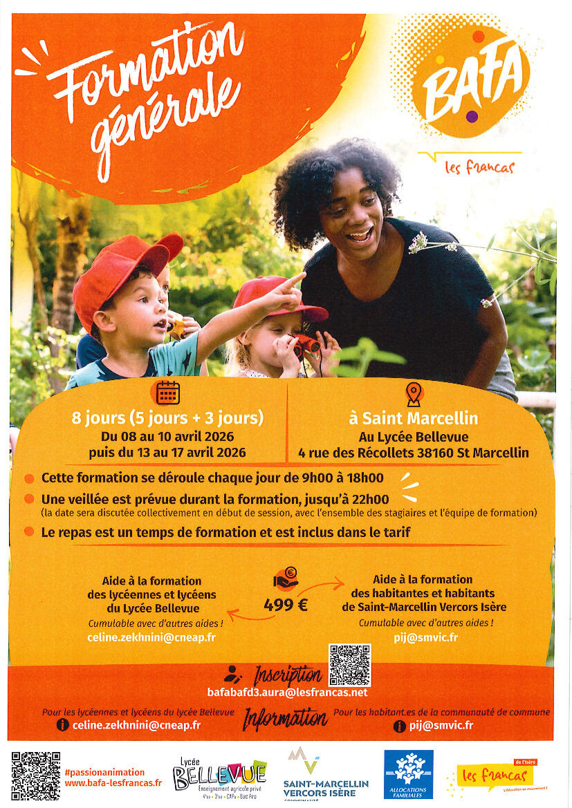 Formations Bafa 2026 07/02/2026 Formations BAFA, générale et approfondissement, du 8 au 18 avril 2026 au Lycée Bellevue à Saint-Marcellin