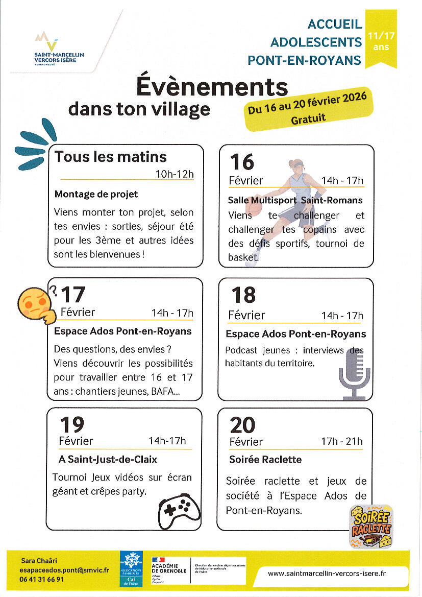 Programme Espaces Ados Vacances D'hiver 07/02/2026 En complément de leurs offres d'accueil de loisirs à la journée, les accueils adolescents proposent des ouvertures de leurs locaux et des animations gratuites et sans inscription.