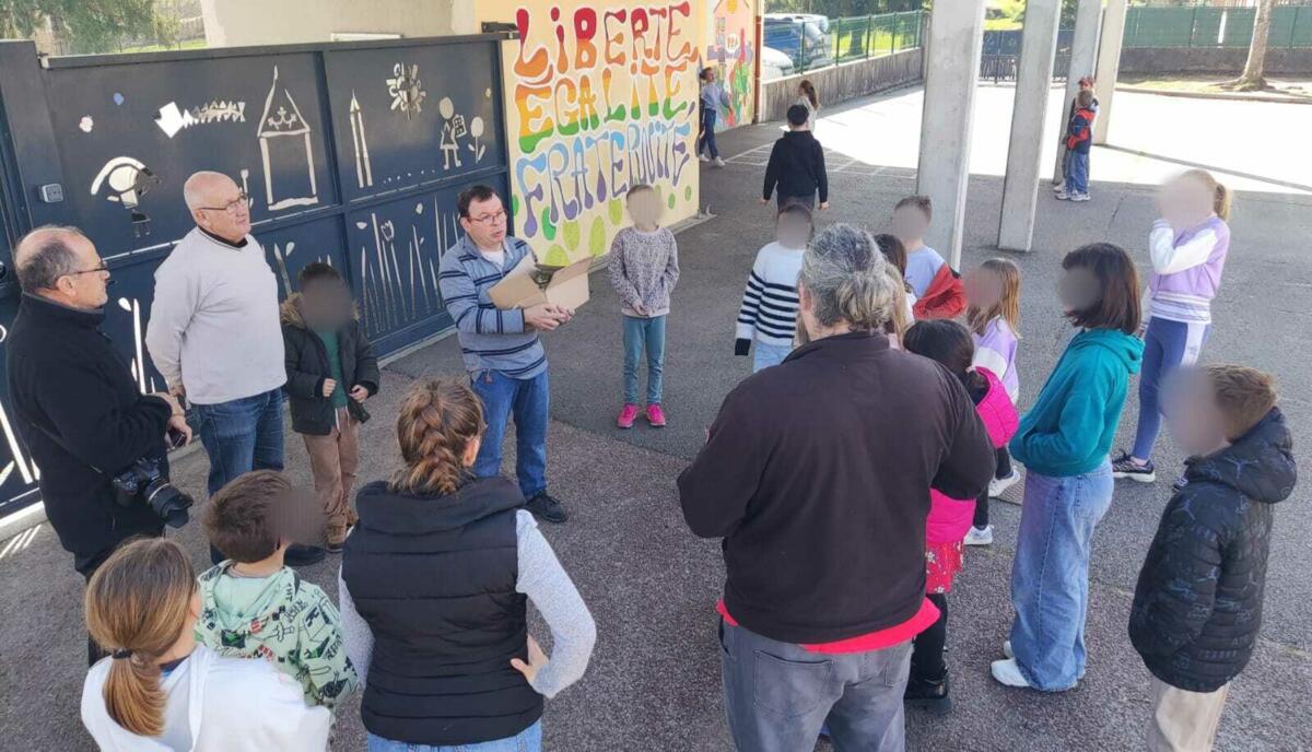 Pendant la pause méridienne, Le rucher de Saint Victor est venu présenté son activité aux enfants de l 'école