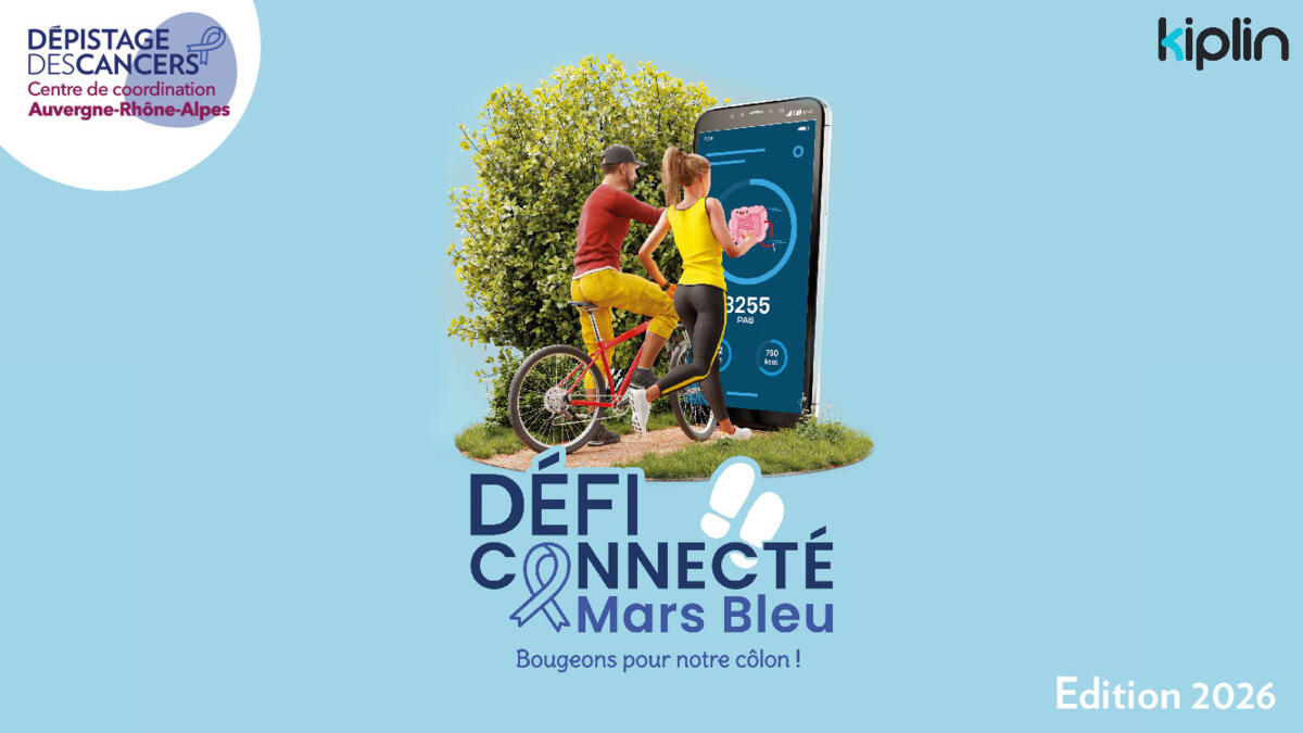 Du 10 au 31 mars 2026, participez au Défi Connecté Mars Bleu : un défi sportif et ludique, gratuit et ouvert à tous, pour prendre soin de sa santé tout en s’amusant.