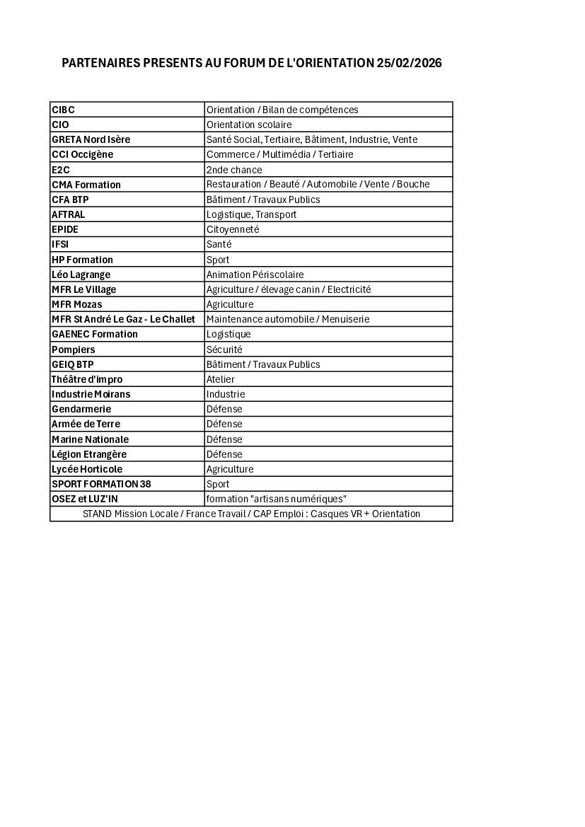 QUELS PARTENAIRES PRESENTS AU FORUM DE L'ORIENTATION ? 🤔