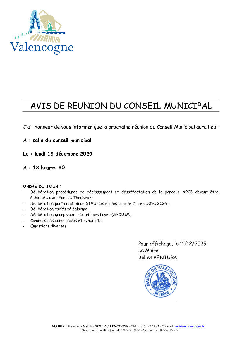 AVIS DE REUNION DU CONSEIL MUNICIPAL