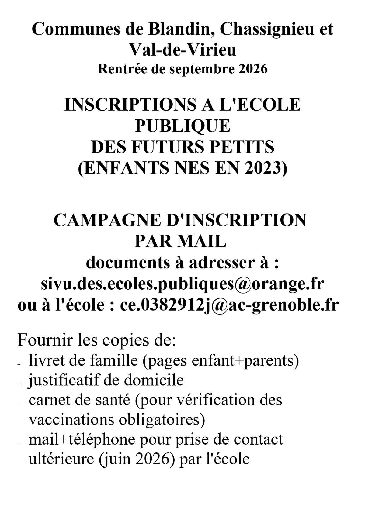/ Campagne inscription enfants nés en 2023 pour septembre 2026
