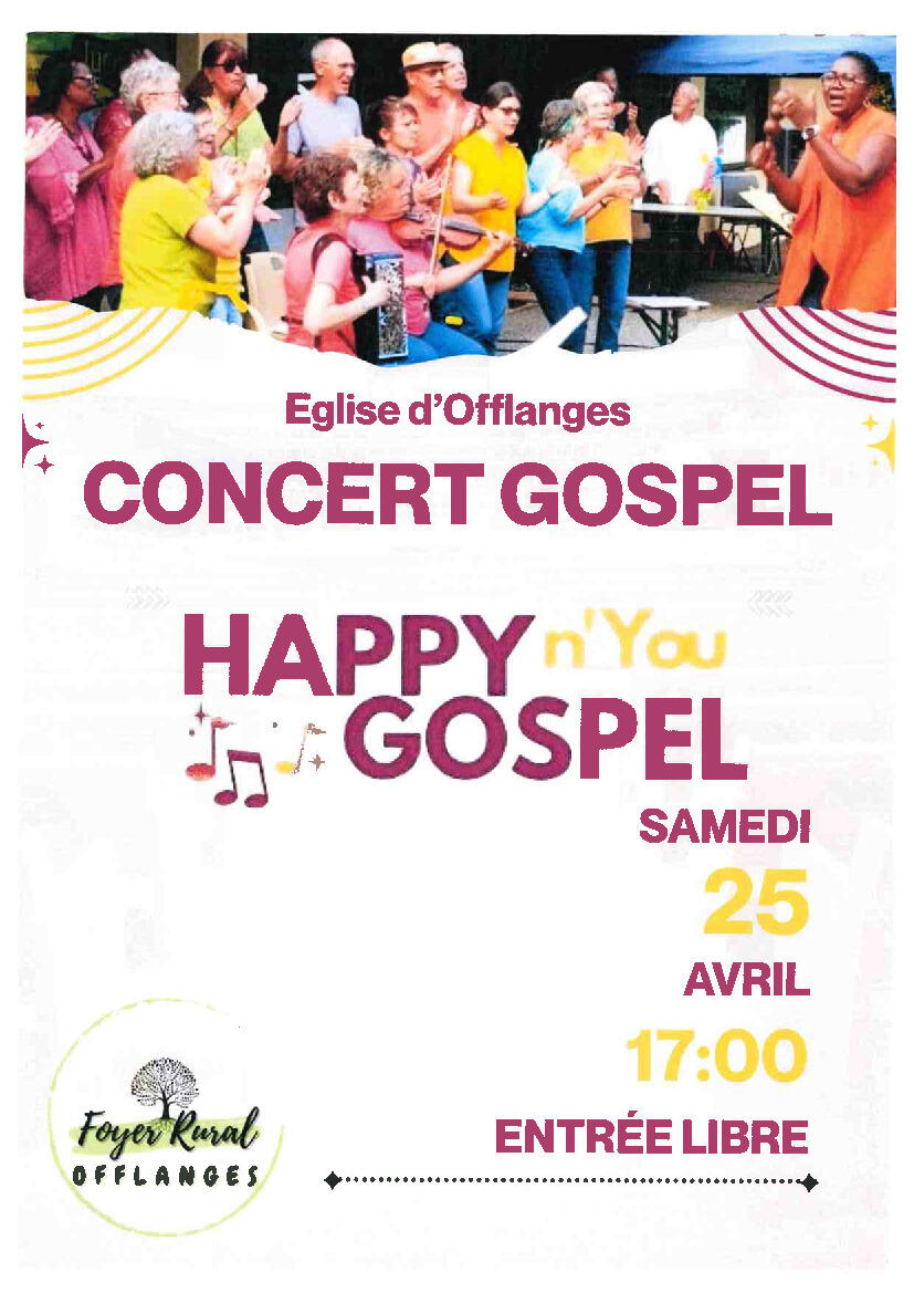 Le 25 Avril l'église d'Offlange offre un beau concert Gospel .