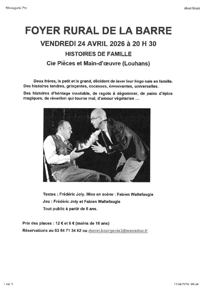 Le 24 Avril pièce de théatre à La Barre "Histoire de famille "