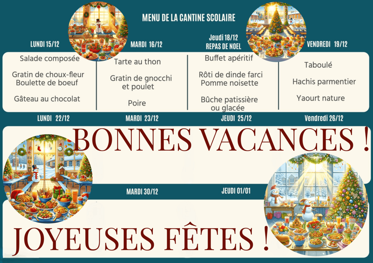 le Menu de la Cantine de Décembre et repas de Noël 2025