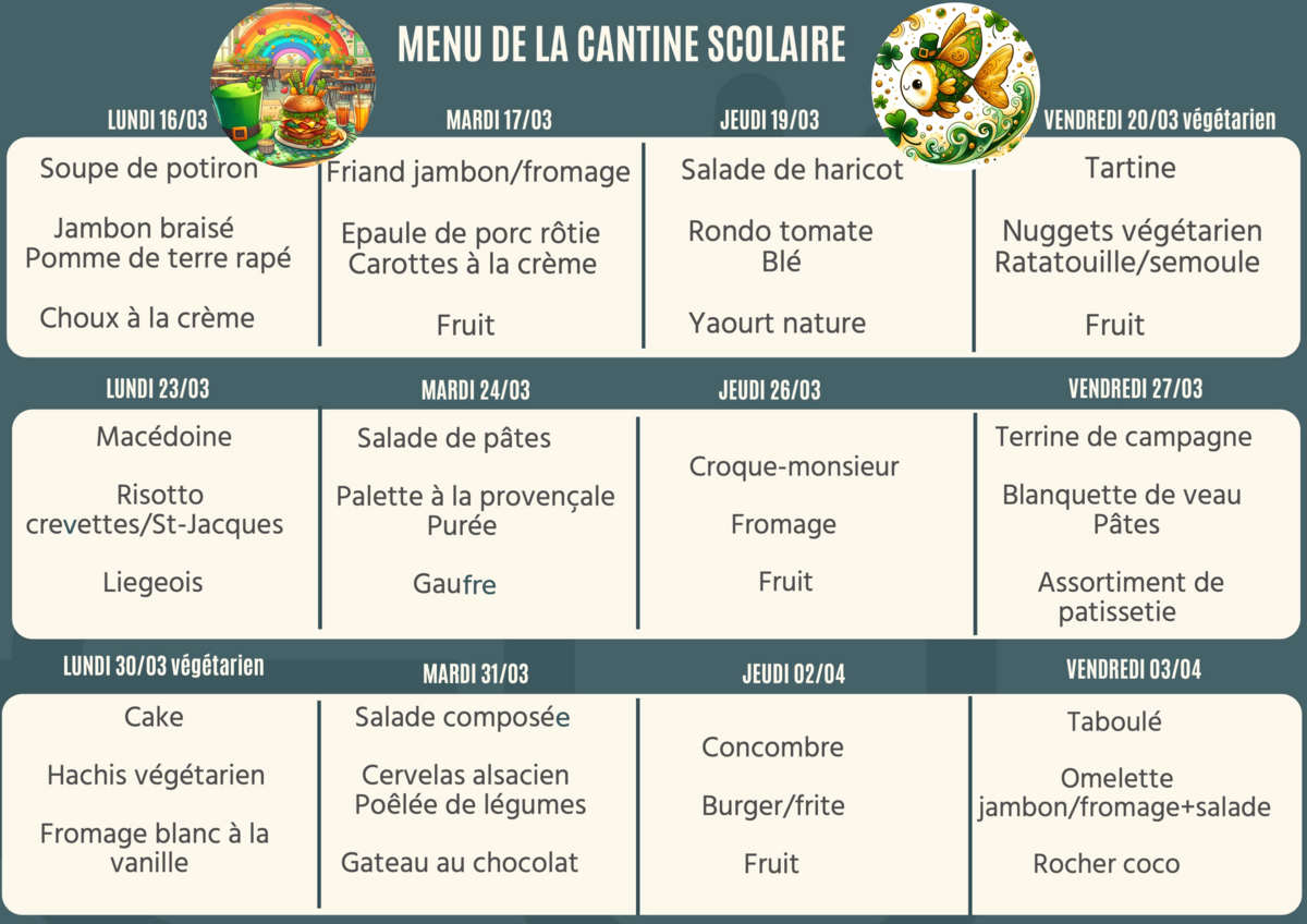 le MENU de la CANTINE de mars-avril