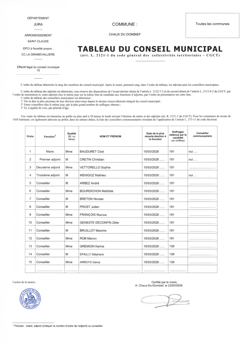 Toute l'actualité de Mairie de La Chaux-du-Dombief