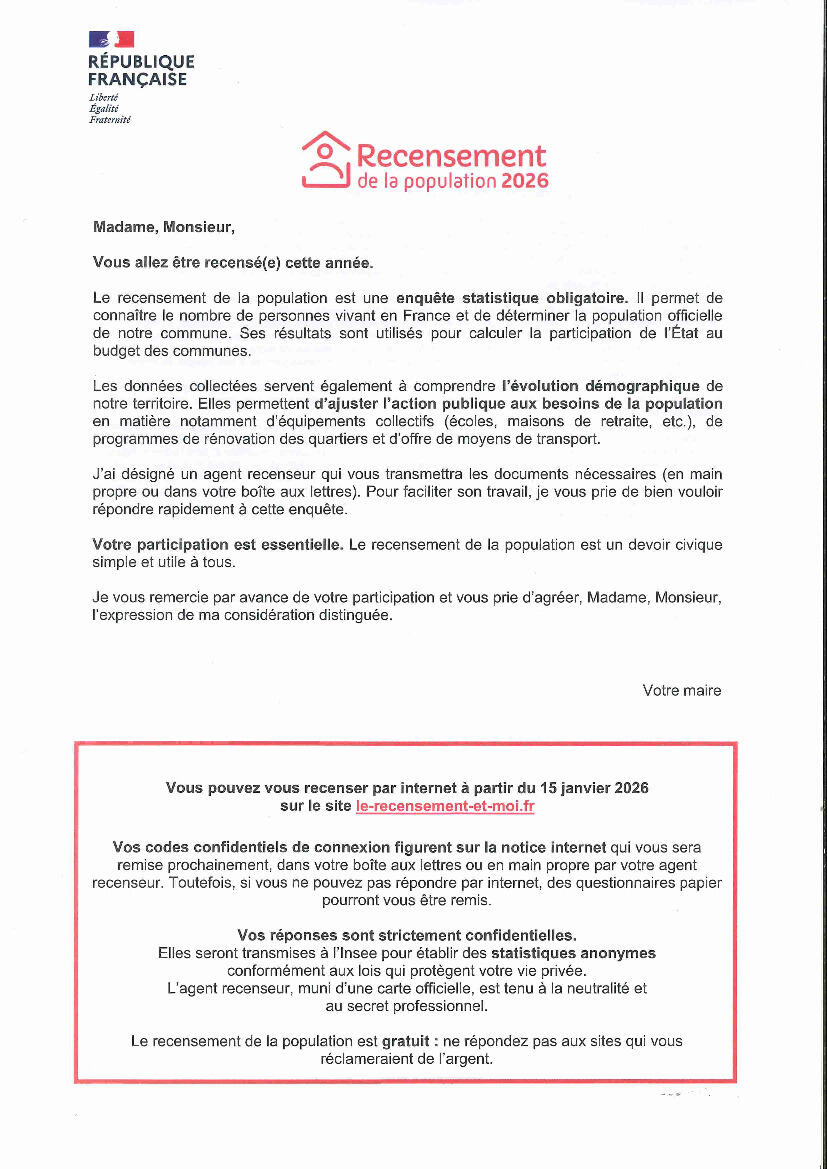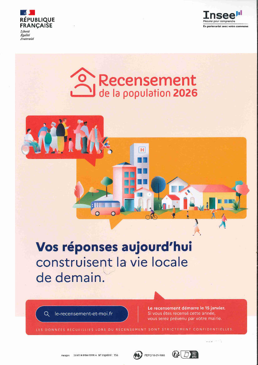 Recensement De La Population 2026 09/01/2026 Le recensement de la population débutera le jeudi 15 janvier 2026 !