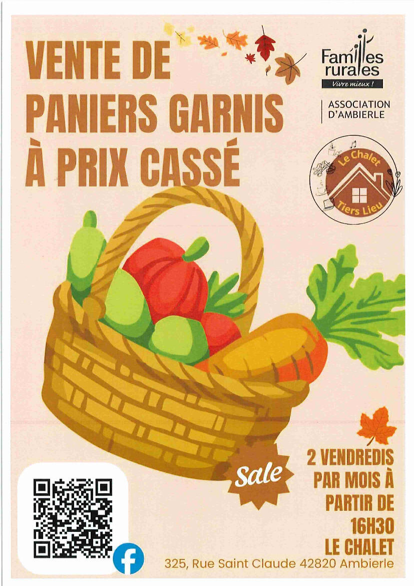 Vente De Paniers Garnis 17/03/2026 L'association Familles Rurales organise une vente de paniers garnis 2 vendredis par mois.