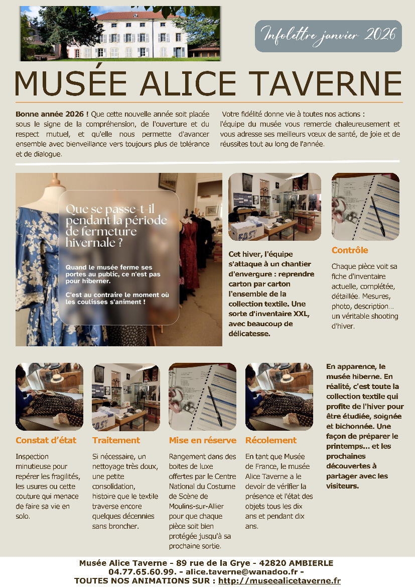Votre mairie / Actualités / Musée Alice Taverne - Infolettre janvier