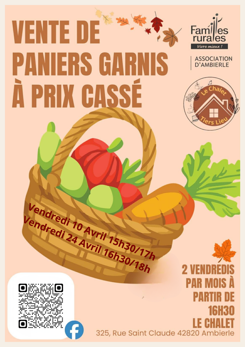 VENTE DE PANIERS GARNIS 07/04/2026 Vendredi 10 avril 2026 de 15h30 à 17h Vendredi 24 avril 2026 de 16h30 à 18h