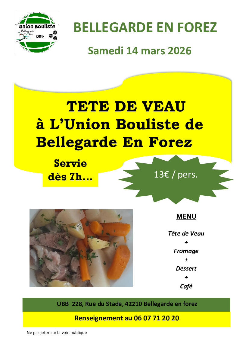 Union Bouliste : Tête de veau le samedi 14 mars