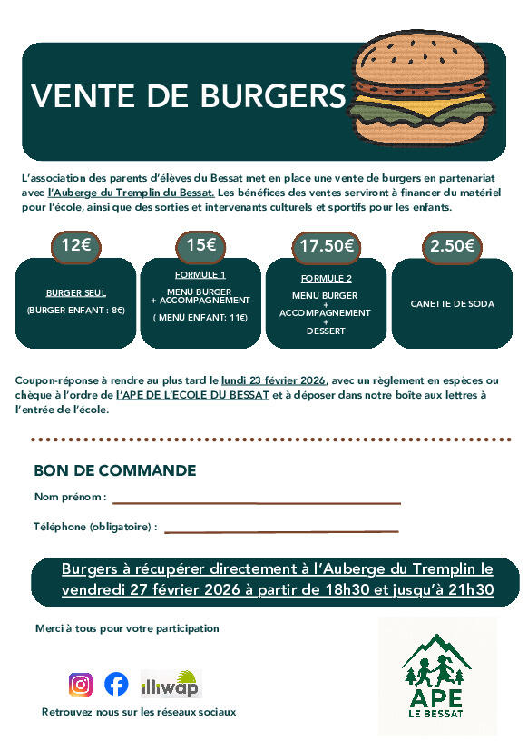 APE ECOLE DU BESSAT - VENTE DE BURGER