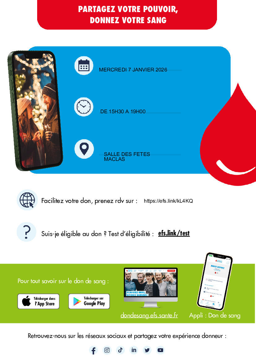 Don De Sang : Collecte du 07 Janvier à Maclas