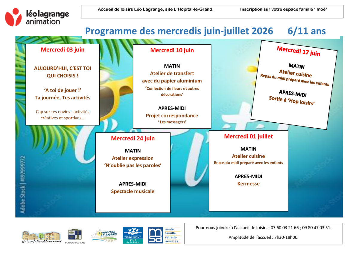 Accueil de loisirs – Programme des mercredis avril à juillet 2026 – accueil de loisirs Léo Lagrange 07/04/2026 Lire la suite