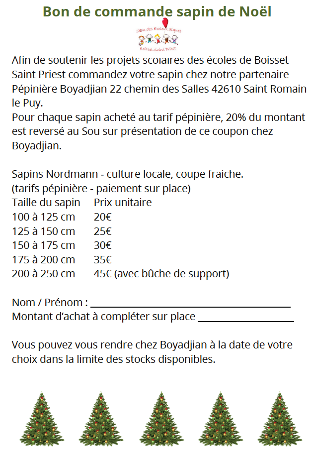 VENTE DE SAPIN DE NOEL PAR LE SOU DES ECOLES