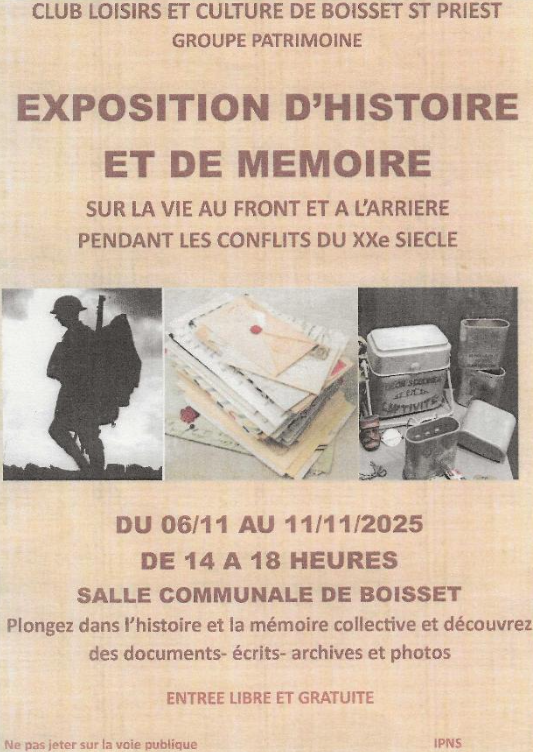Exposition d’histoire et de mémoire du 6 au 11 novembre