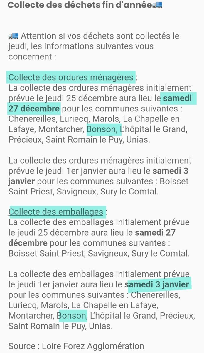 COLLECTE ORDURES MENAGERES. FIN D'ANNÉE