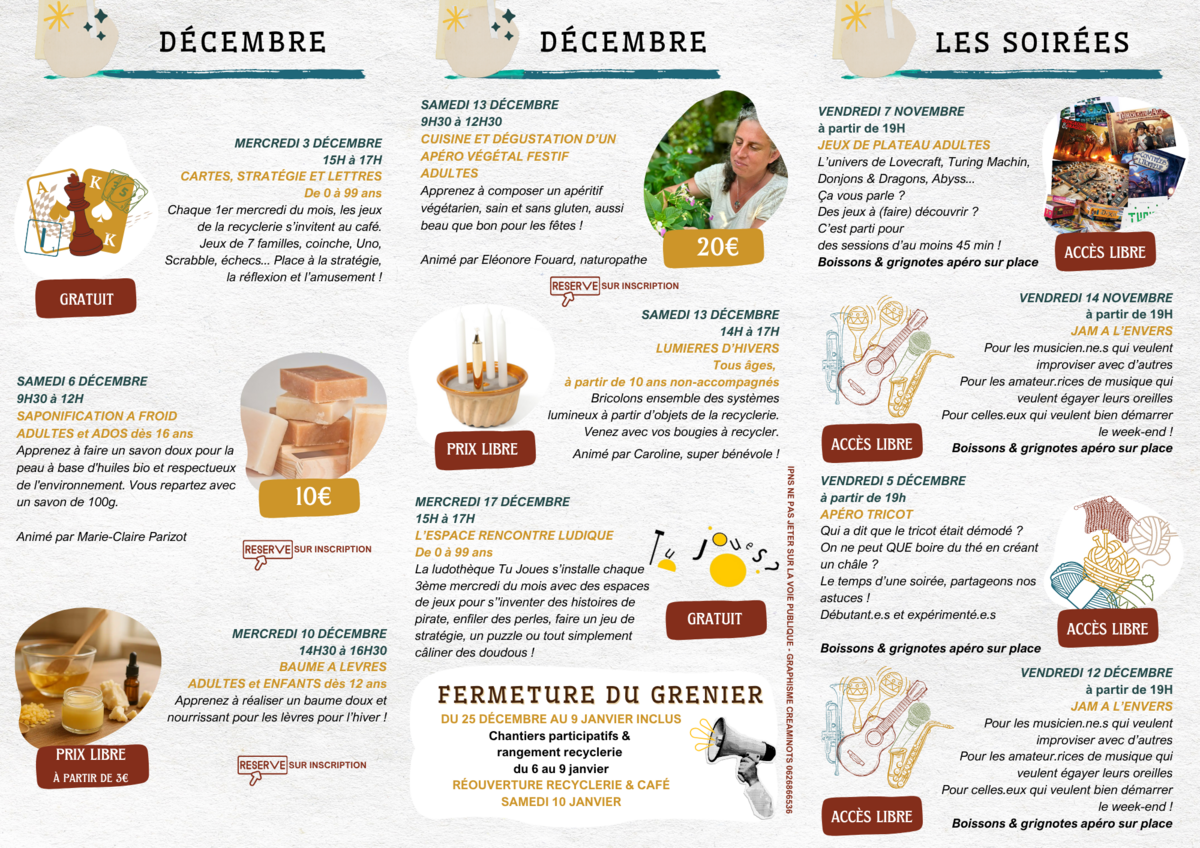L'envers du grenier novembre décembre 27/11/2025 programmation évènementielle pour la période novembre-décembre. Source : Mairie de Burdignes