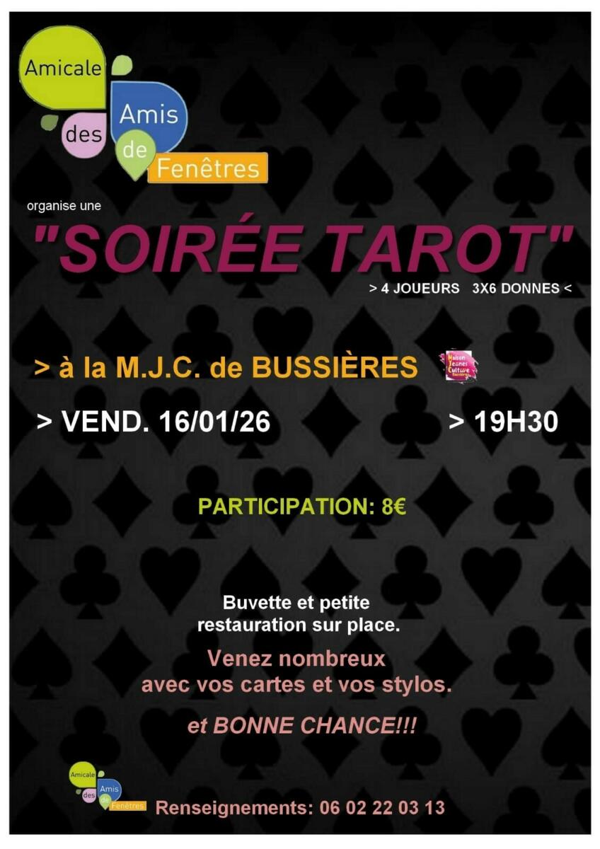 Soirée tarot des Amis de Fenêtres le 16 janvier à la MJC