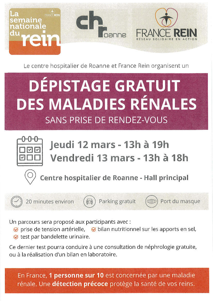 Dépistage gratuit des maladies rénales 12/13 Mars 26 Roanne