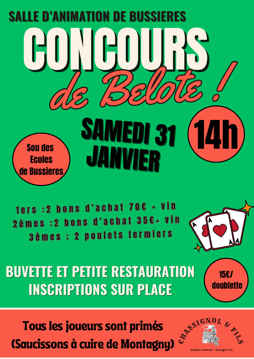 Concours de belote du Sou des Écoles 31 janvier 2026 à 14h00