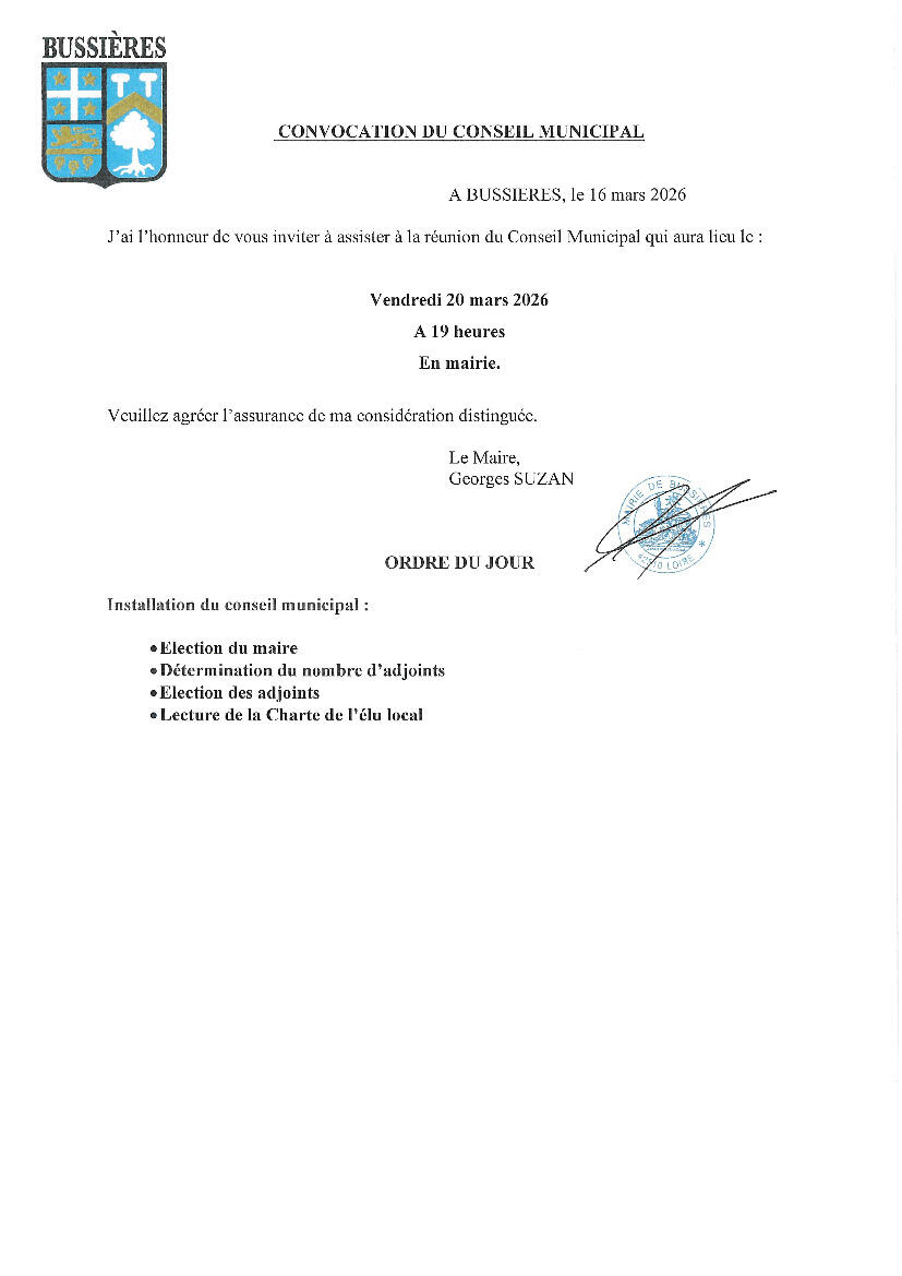 Votre mairie / Actualités / Convocation conseil municipal du 20/03/2026