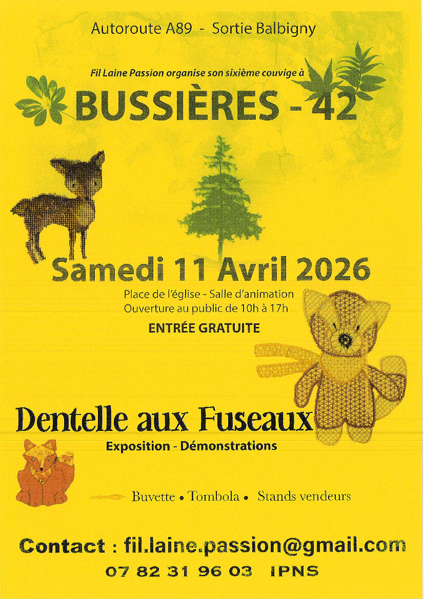 L'association Fil laine Passion organise son 6 ème Couvige le 11 avril 2026 à la salle d'animation de Bussières de 10h00 à 17h00.
