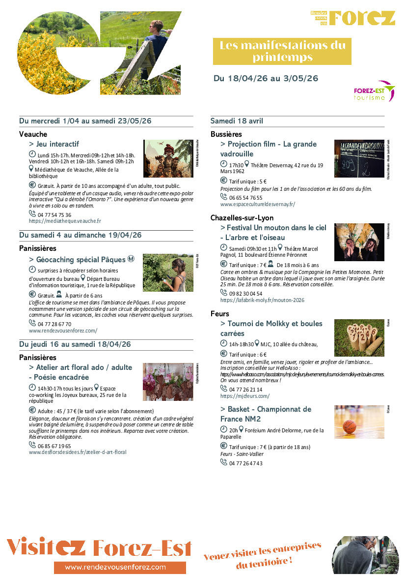 Les manifestations de Forez-Est - Du 18 avril au 3 mai 2026 16/04/2026 Les manifestations de Forez-Est - Du 18 avril au 3 mai 2026