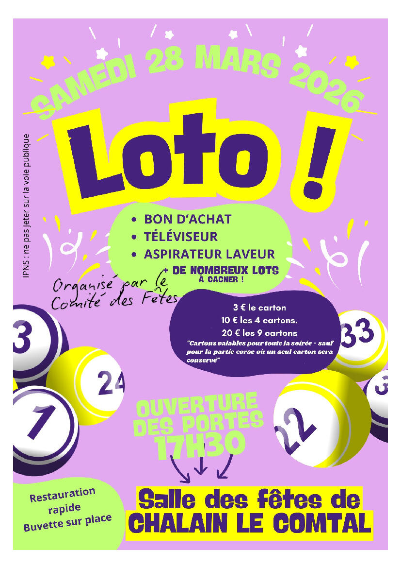 🎉Le grand Loto du Comité des Fêtes arrive ! 🎉 28 mars 2026