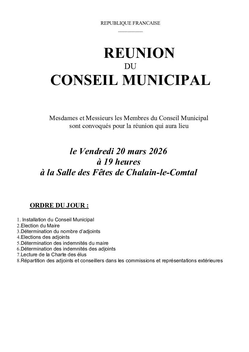 Veuillez trouver ci-joint l'invitation à la réunion d'installation du nouveau Conseil Municipal